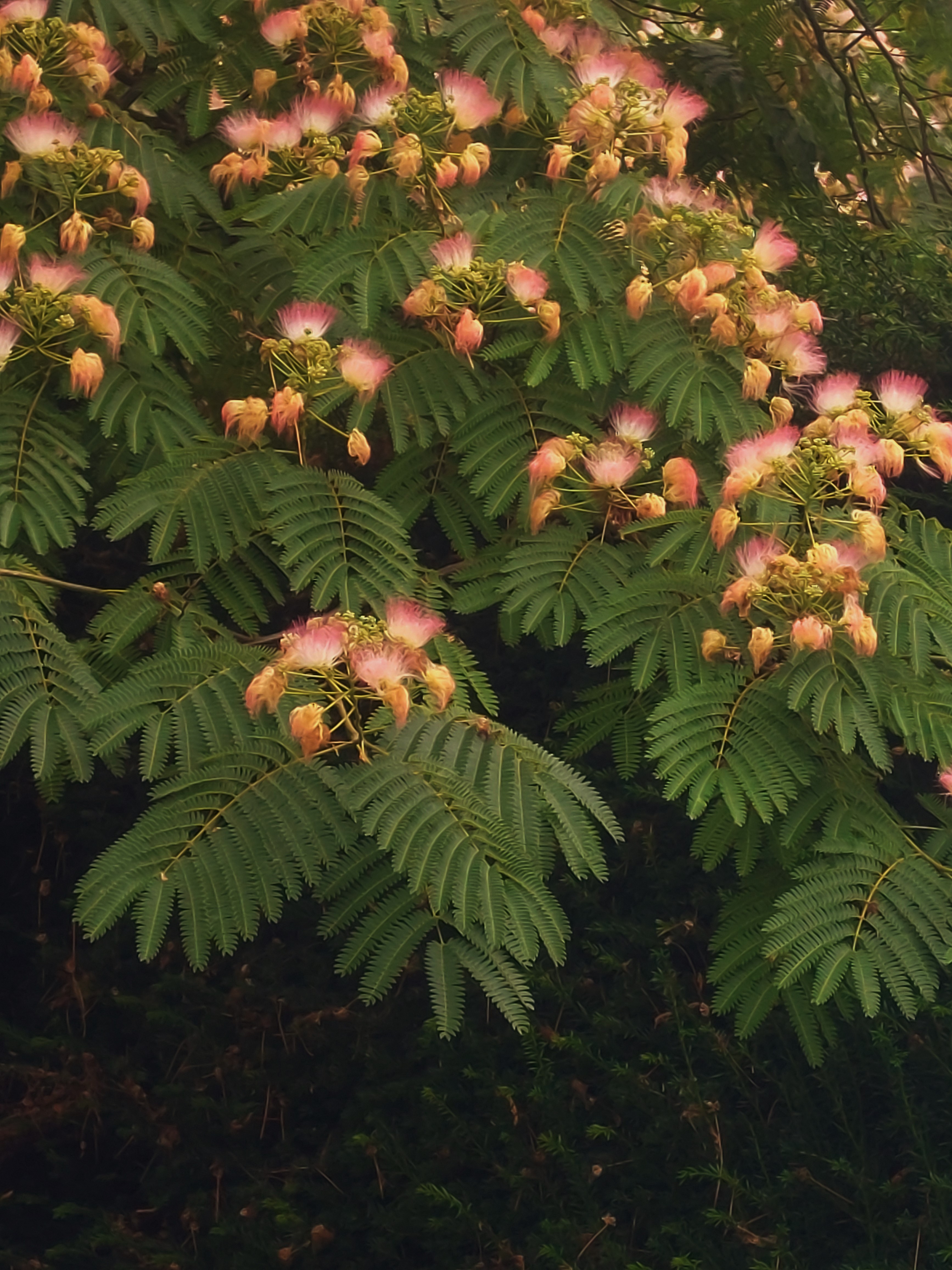 Wir lernten interessante Bäume und Pflanzen kennen, z.B. die Seidenakazie, auch Seidenbaum genannt oder auch Schlafbaum.