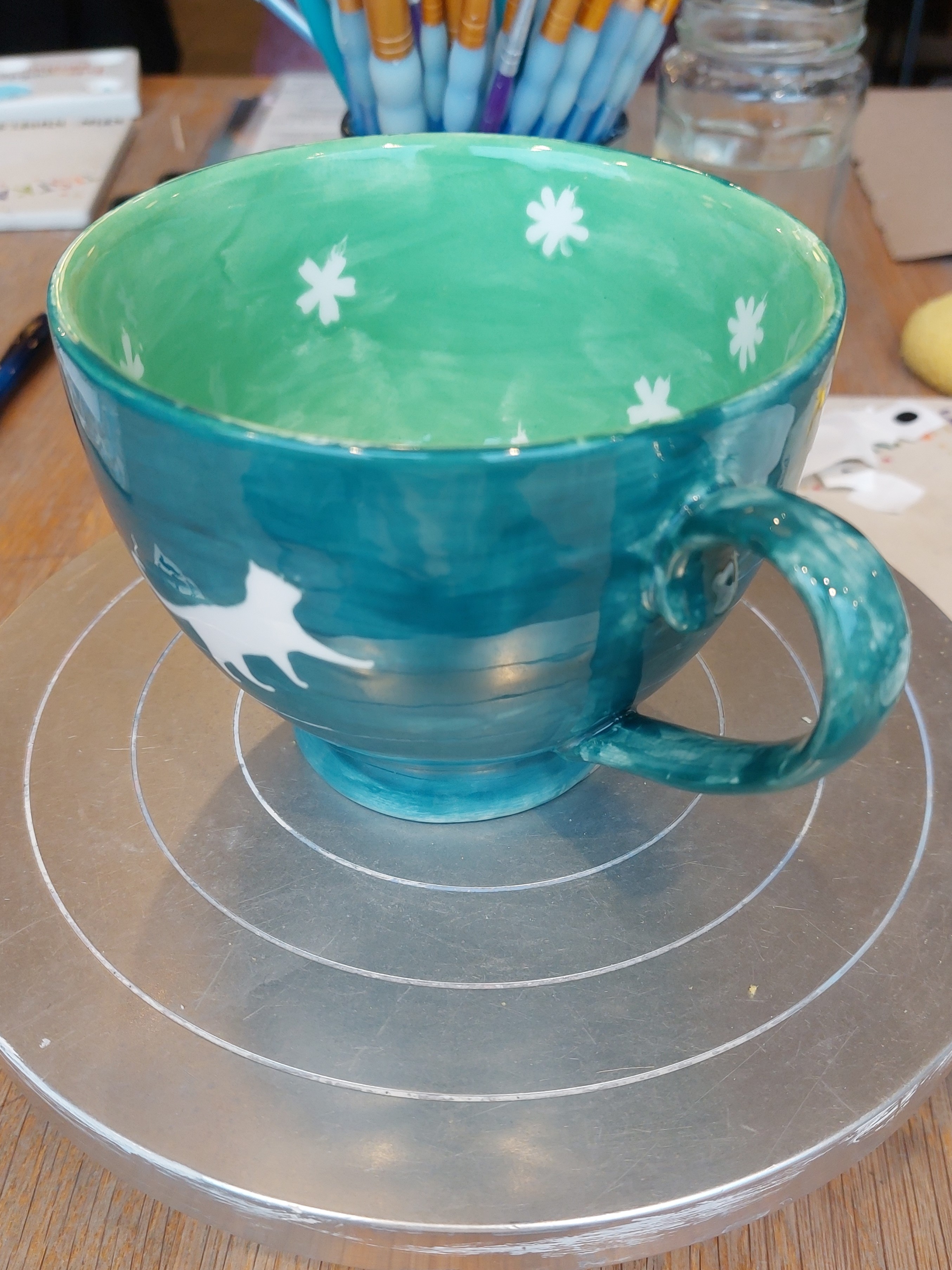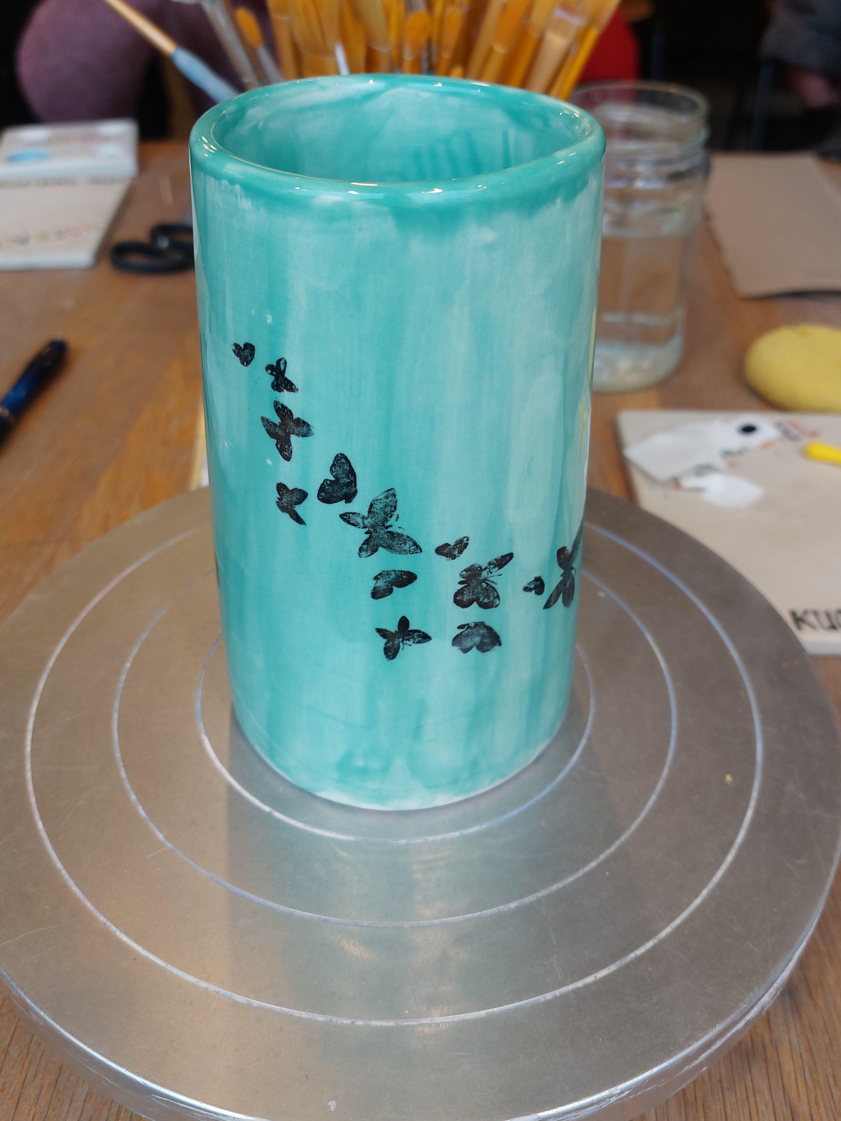 Wir hatten einen sehr vergnüglichen, kreativen Nachmittag und sind gespannt, wie unsere Meisterwerke aus dem Brennofen kommen.